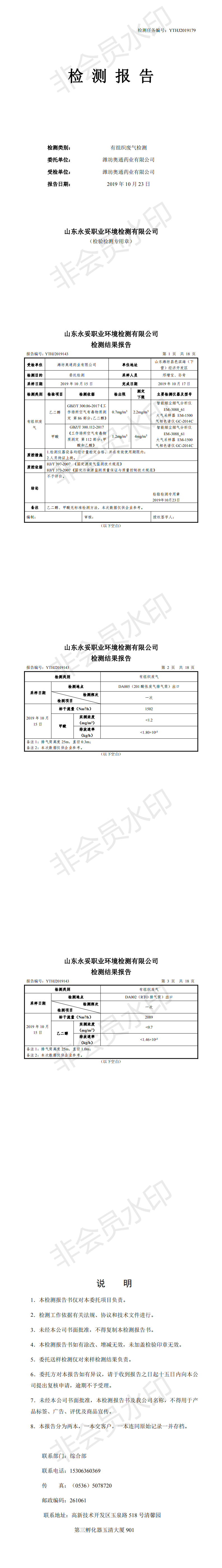 濰坊奧通藥業(yè)有限公司10月份環(huán)保檢測報(bào)告