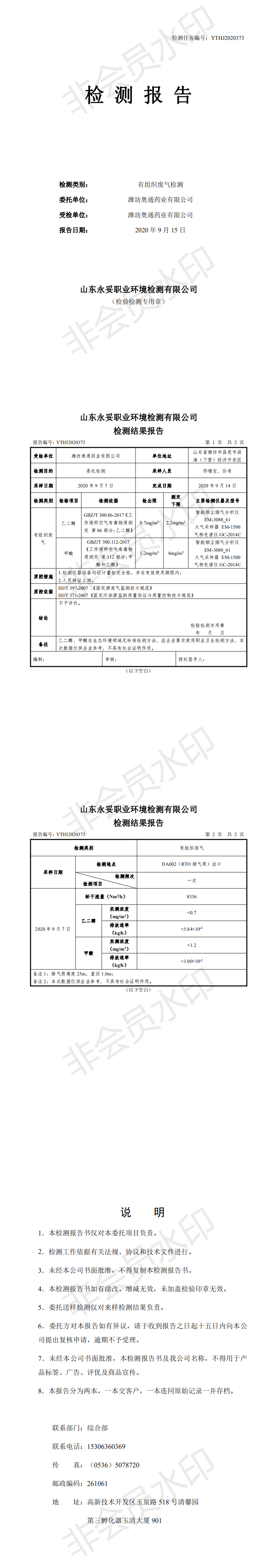 濰坊奧通藥業(yè)有限公司九月環(huán)境檢測報告