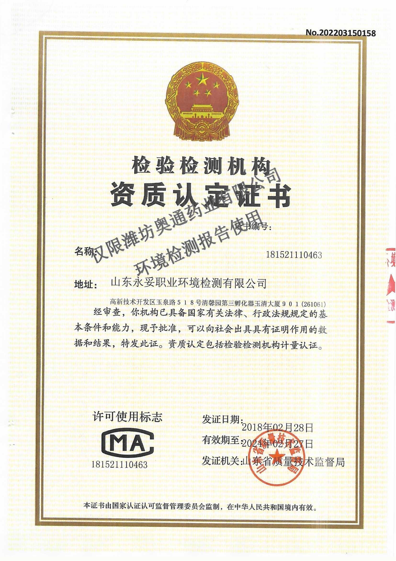 濰坊奧通藥業(yè)有限公司三月環(huán)境檢測報告