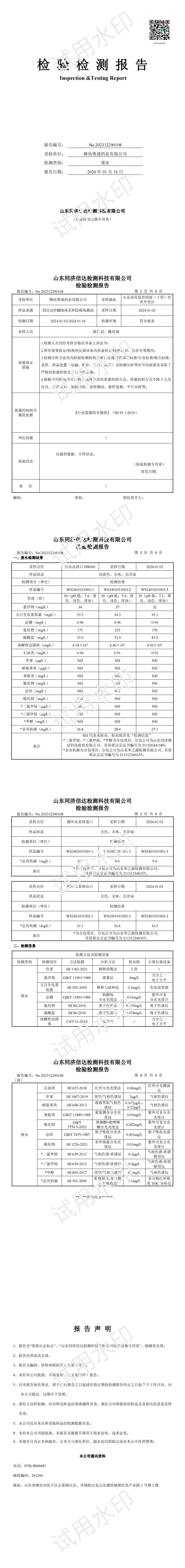 濰坊奧通藥業(yè)有限公司一月環(huán)境檢測報告