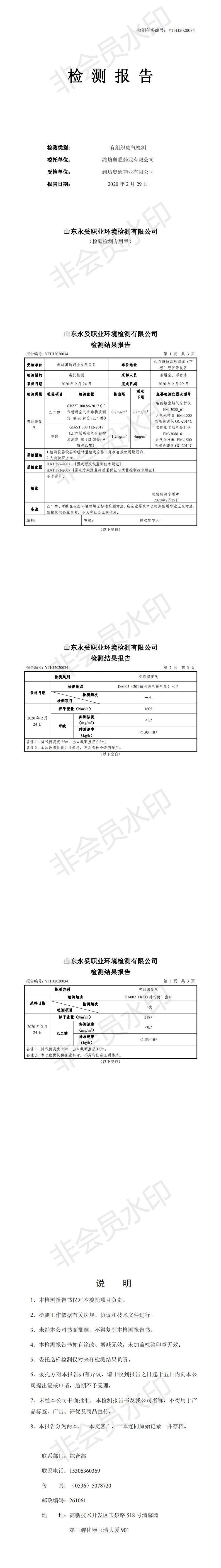 奧通藥業(yè)三月廢水廢氣檢測(cè)報(bào)告-XZB