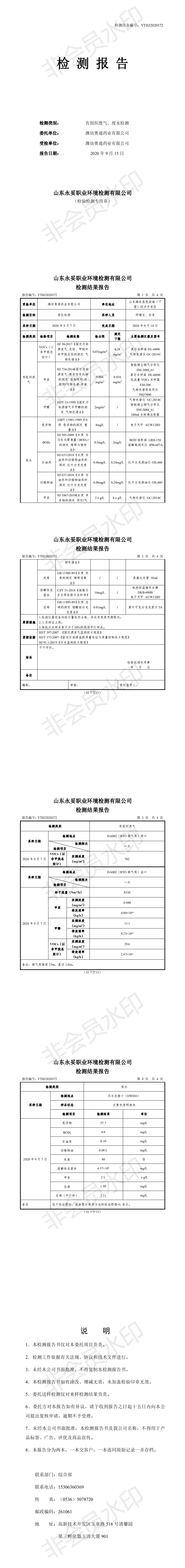 濰坊奧通藥業(yè)有限公司八月環(huán)境檢測報(bào)告