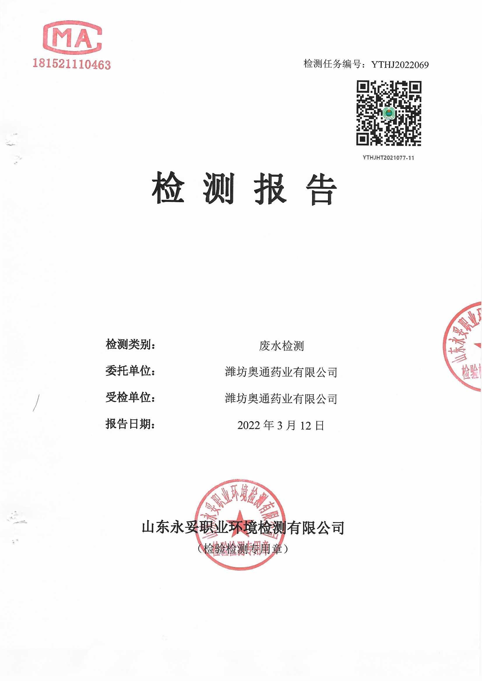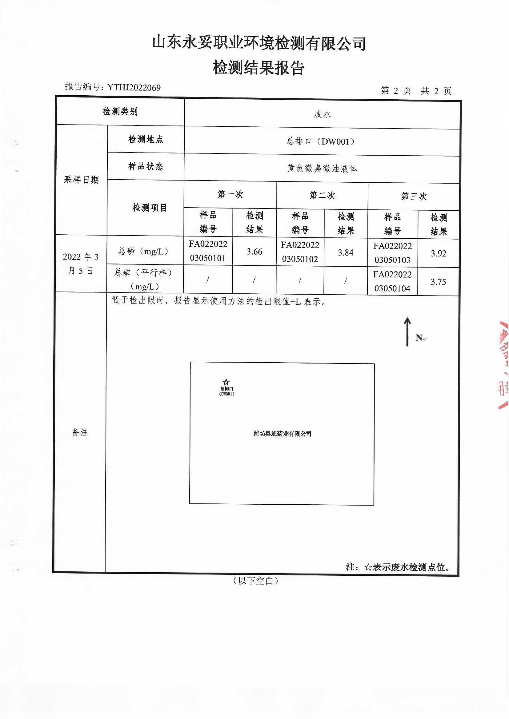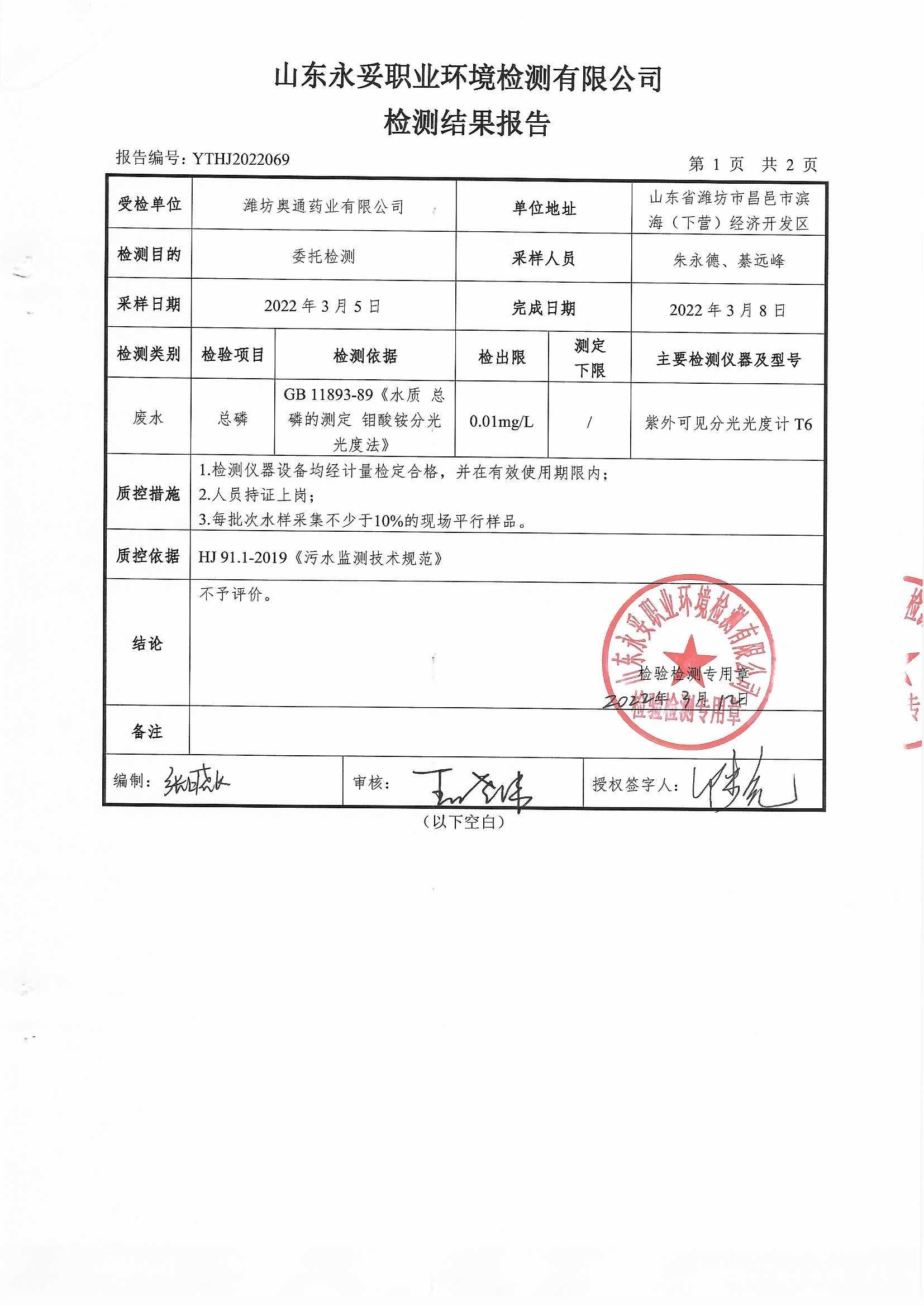 濰坊奧通藥業(yè)有限公司三月環(huán)境檢測報告