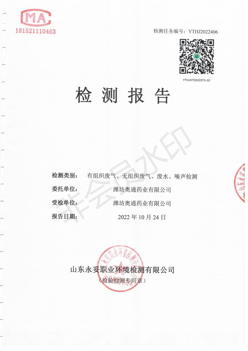 濰坊奧通藥業(yè)有限公司十月環(huán)境檢測(cè)報(bào)告