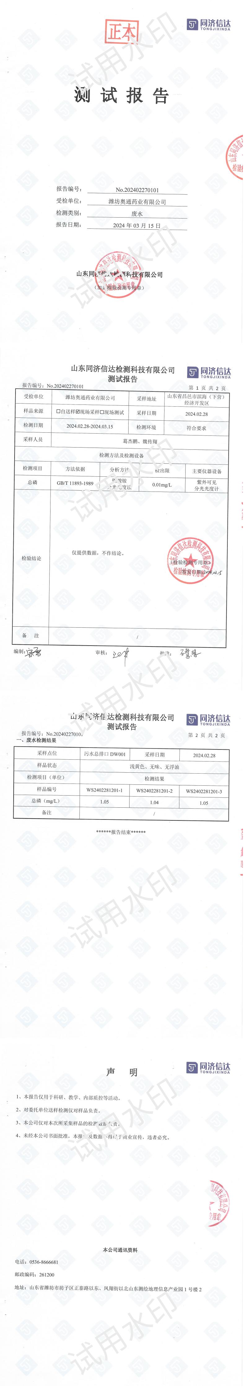 濰坊奧通藥業(yè)有限公司二月環(huán)境檢測(cè)報(bào)告