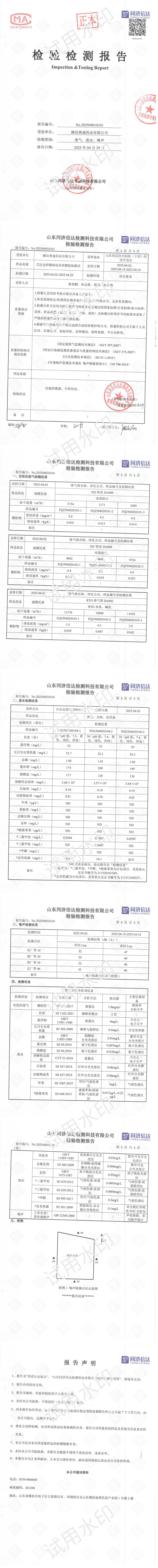 富祥(山東)新材料有限公司四月環(huán)境檢測(cè)報(bào)告